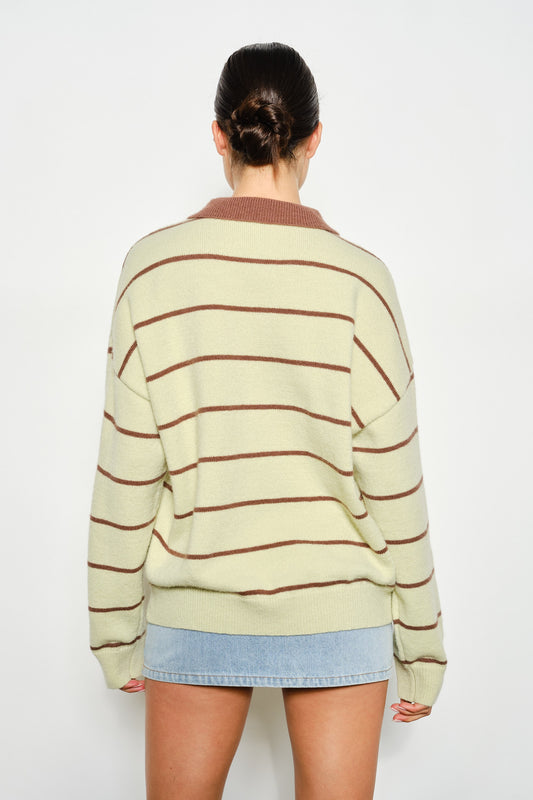 Lelis - half button sweater rayé (2 couleurs dispo.)