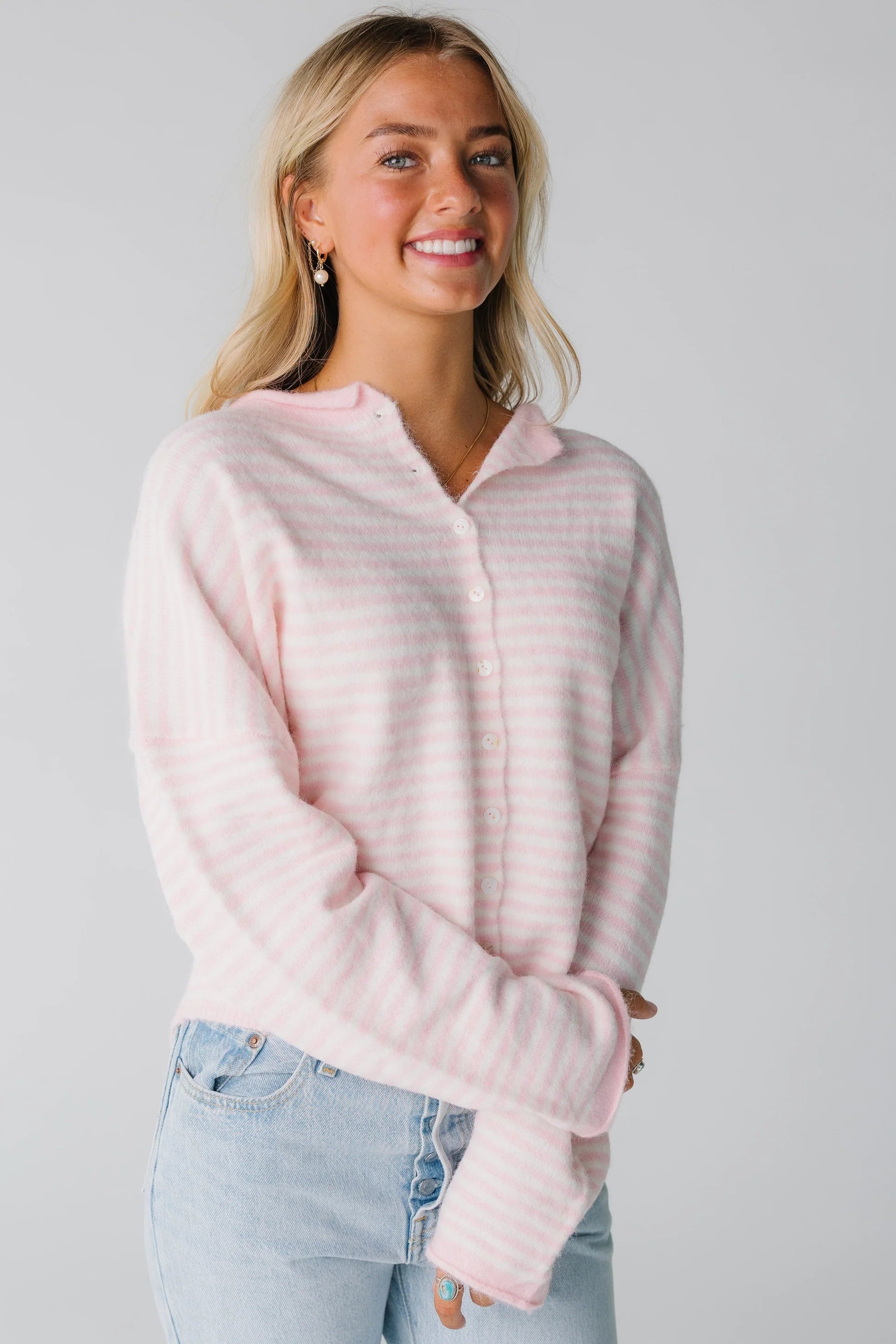 Things Between - baby pink and white striped cardigan